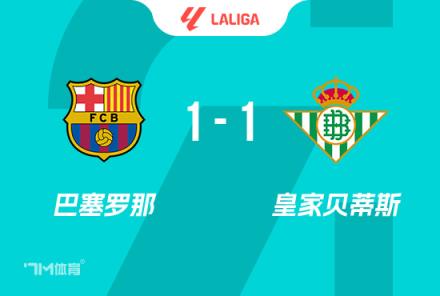 下半場(chǎng)傷停補(bǔ)時(shí)4分鐘,全場(chǎng)比賽結(jié)束,最終巴薩1-1貝蒂斯。